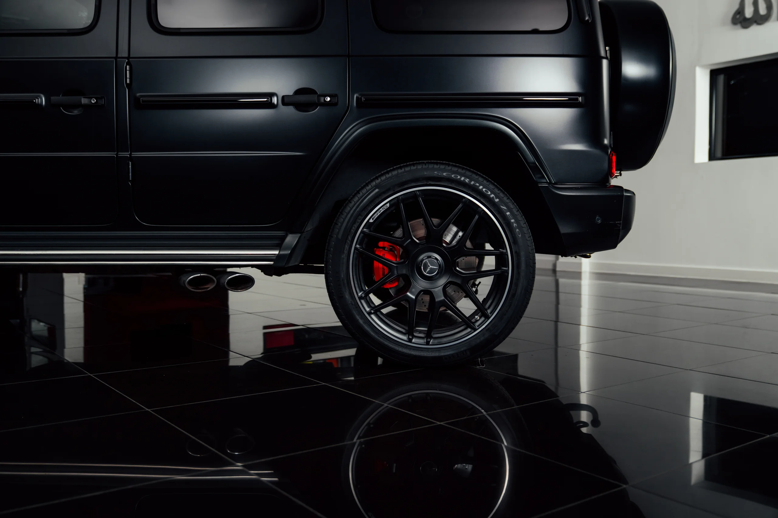 Side-exit exhaust pipes deliver both visual drama and a thunderous soundtrack, while exclusive AMG alloy wheels complete the striking profile. Finished in Satin Black, this G-Wagon is the very definition of stealth luxury — combining exclusivity with an unmistakably aggressive road presence.